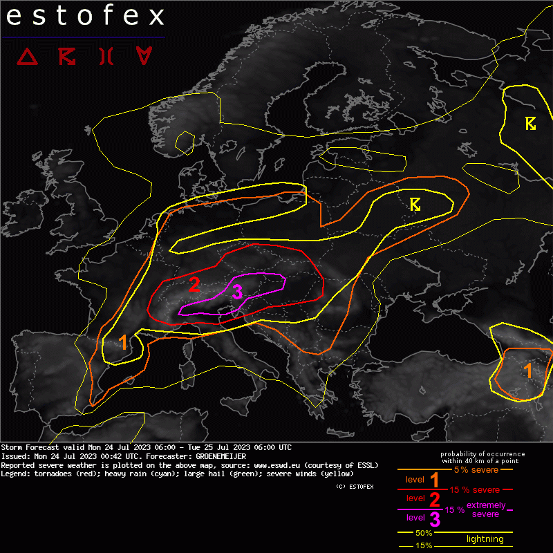 Dve močni HP supercelični nevihti na območju Palmanove,Italija 24. 7. 2023